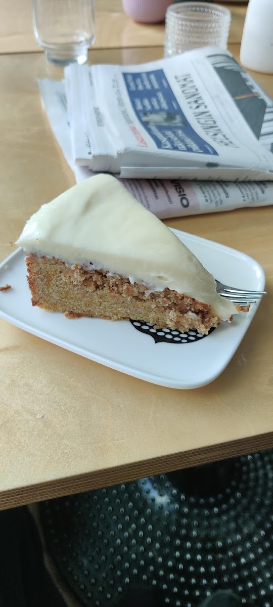 Excellent coffee and sweet treats (carrot cake pictured), beyond excellent service and an atmosphere that makes you feel right at home. The owner is passionate about what they do and goes out of his way for his customers. Probably my favourite cafe in Helsinki!